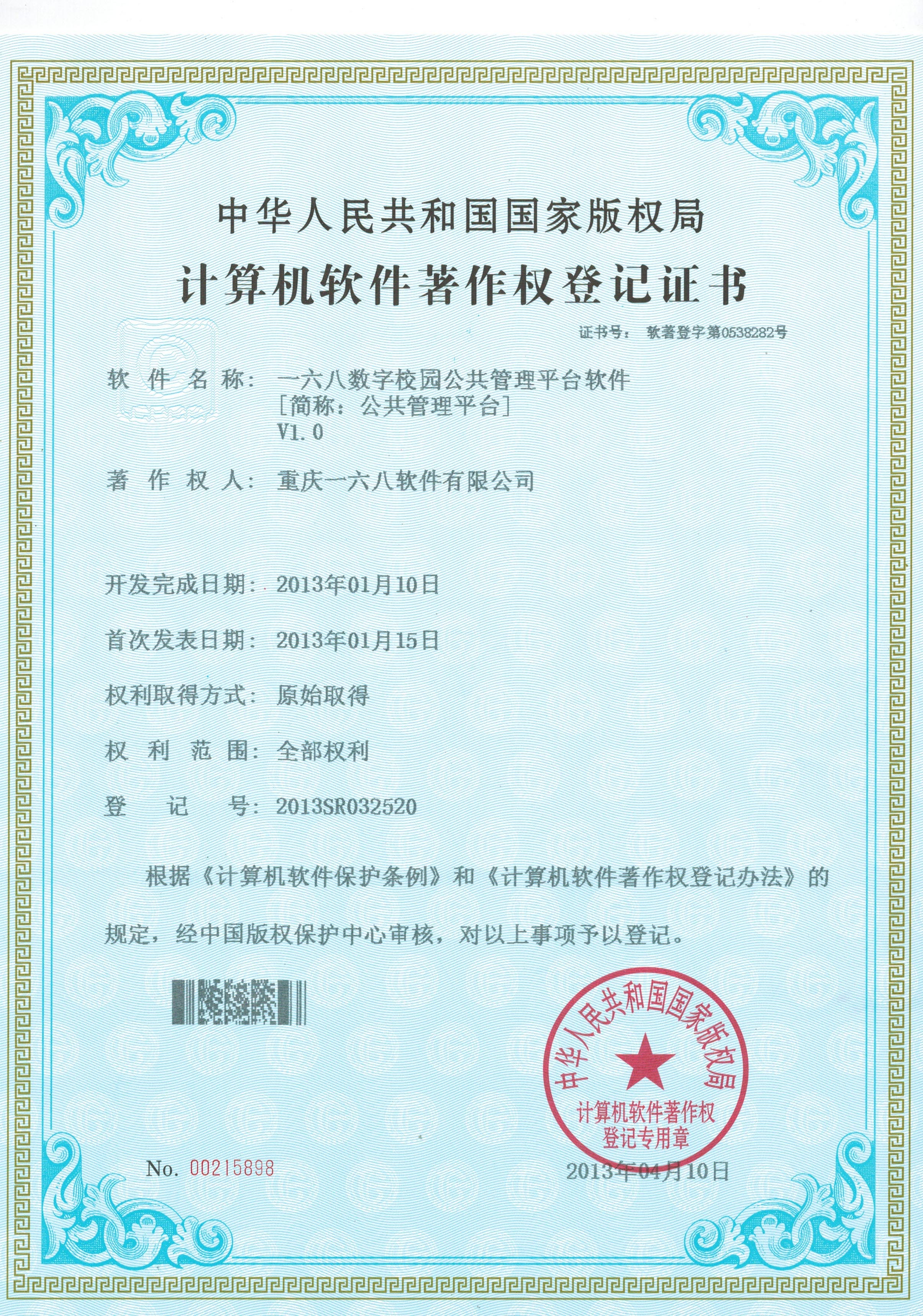 一六八支撐云平臺著作權