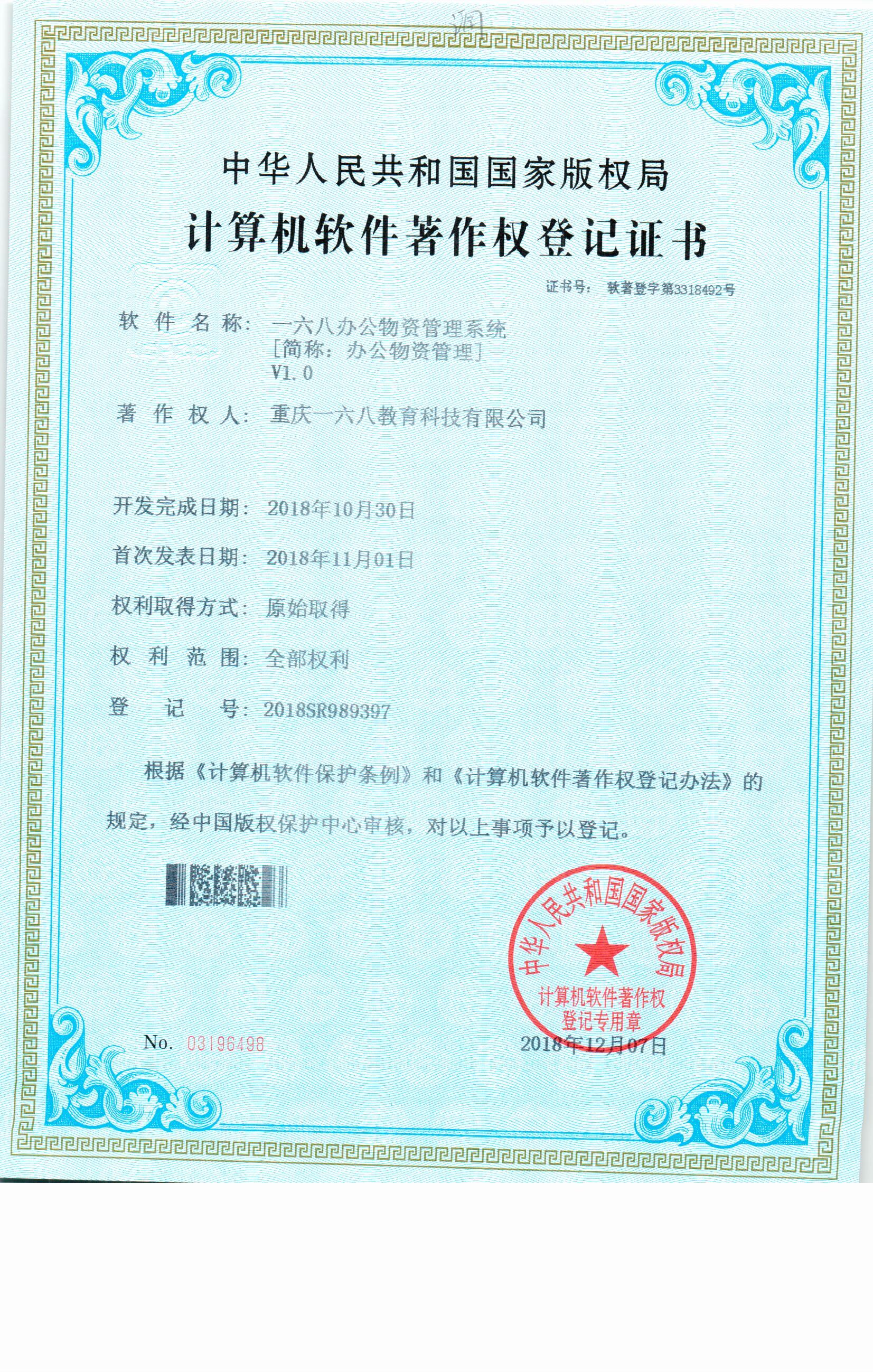 一六八辦公物資管理系統著作權