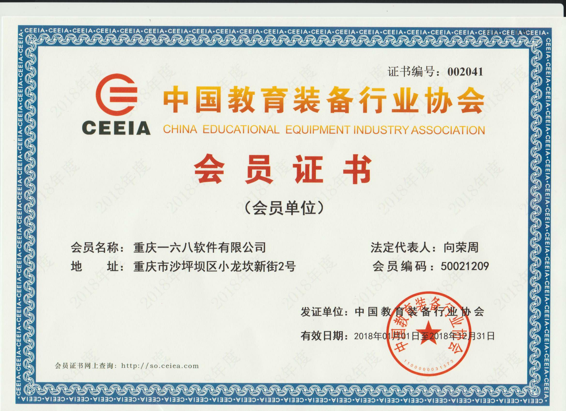 中國教育裝備行業協會會員證書